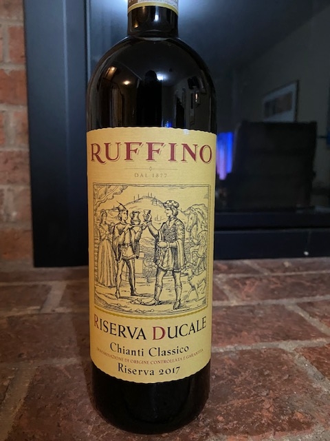Ruffino Chianti Classico. It needs to breath a bit longer, but I have all night. Initial impressions... cherry, a hint of of prune, earthy spice, pepper-y, dry smooth finish. Rating 3.5. I expect the score to increase the longer it's exposed to air.